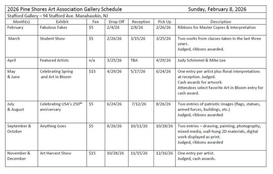 Pine Shores Art gallery shows