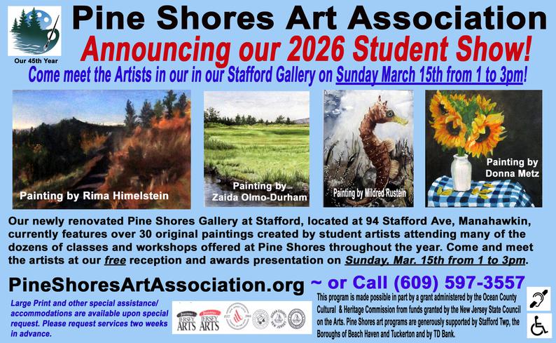 This program is made possible in part by a grant administered by the Ocean County Cultural & Heritage Commission from funds granted by the New Jersey State Council of the Arts.